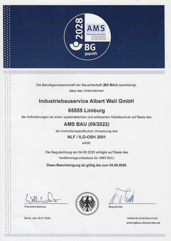 Hierfür erhielt das Unternehmen seit Juli 2001 kontinuierlich die Zertifizierung nach DIN ISO 9001 durch die Zertifizierung Bau e.V. Die Berufsgenossenschaft der Bauwirtschaft (BG Bau) bescheinigt dem Unternehmen zudem die Anforderungen an einen systematischen und wirksamen Arbeitsschutz auf der Basis des AMS Bau zu erfüllen.